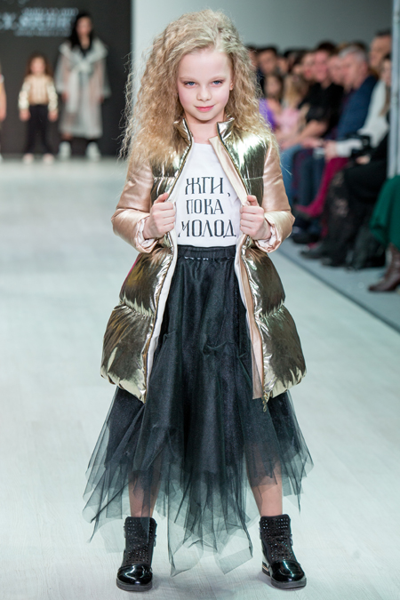 For the first time, KUDRINA brand presented its collection on the catwalk of Belarus Fashion Week. Brand designer Natalya Kudrina is known to everyone as Belarusian singer Venera, a performer of famous hits, as well as an outerwear designer for adults. The Wind of change collection is a bold look and a real revolution in children's and teen fashion. The collection consisted of multi-layered images combining a variety of materials, textures, colors and shapes.