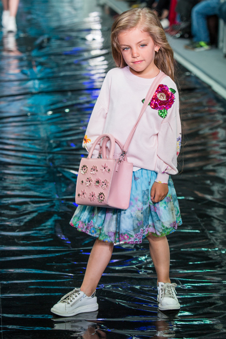 A collection of casual wear for children and adolescents was demonstrated by the Acoola brand. In one show, things gathered for sports and active girls, as well as for romantic princesses. In the finale, young models were crowded onto the podium with a friendly crowd.