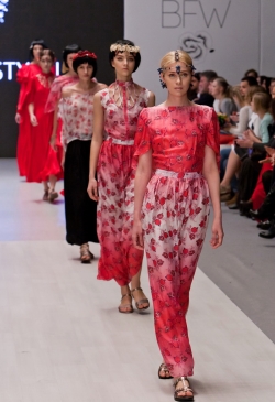 Коллекция сезона весна-лето 2015 бренда Karina Galstyan вдохновлена культурой и народным костюмом Армении. Последний получил свое отображение в стилизации образов моделей и линиях кроя изделий.