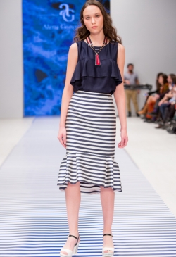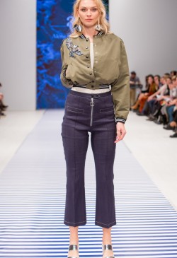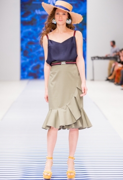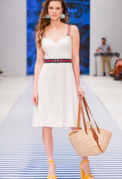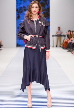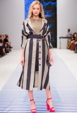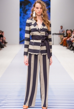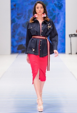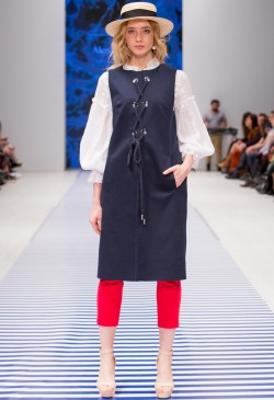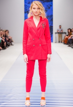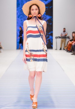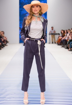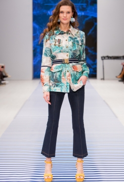 Яркие тропические принты смело сочетаются с оригинальными аппликациями в виде насекомых и птиц. Морской стиль подарит нам круизное настроение! Полоска классических расцветок сине-белого цвета с ярким сочетанием остро модного красного. Жакеты с военно-морской символикой и белые льняные брюки. Лампасы на юбках, сарафанах и брюках – все это составляющие самых последних модных тенденций. Яркой перчинкой в коллекции послужили элементы уже второй сезон стоящего на острие моды милитари-стиля с его военной атрибутикой в виде брошей-орденов-медалей.