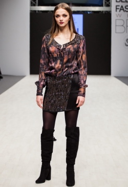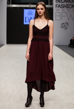 Наибольшее внимание уделяется платьям. Женственный дизайн дополняется современным покроем и изысканными драпировками. Бренд работает только с тканями высокого качества.