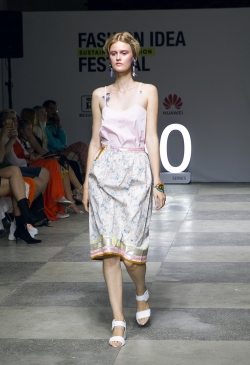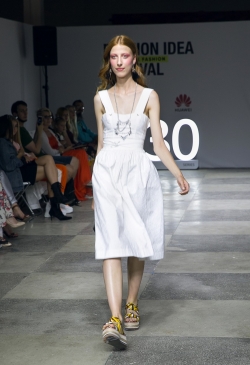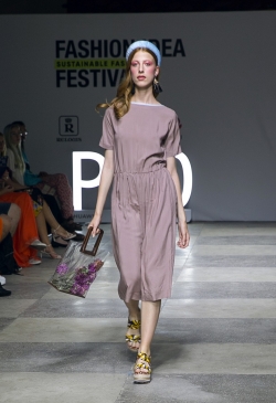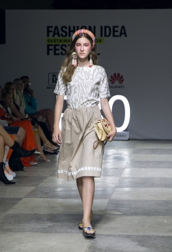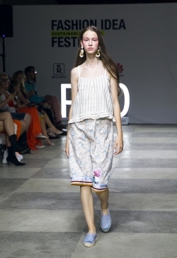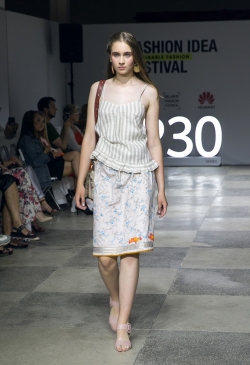 В будущем летнем сезоне дизайнер предлагает много натуральных тканей-лен, вискоза, хлопок, поплин, а также формоустойчивый неопрен, благодаря которому создавались свитшоты, брюки, платья, пальто.