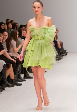 В сочетании фэшн-шоу и инсталляции он очаровал публику своей игривой, но в то же время романтической коллекцией, сочетающей женственность и элегантность. Классические вырезы и пастельные цвета, которые можно увидеть во всей коллекции, встречаются здесь для удобства и прозрачности,.