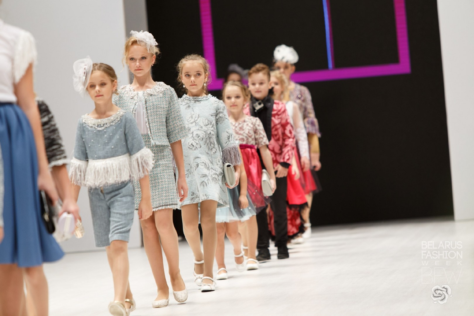Бренды-участники при разработке коллекций позаботились о разных возрастных группах и создали стильные образы как для малышей, так и для подростков. И если для первых ключевые решения в выборе одежды принимаются совместно с родителями, то вторые уже имеют свое представление от прекрасном, следят за тенденциями и свой выбор делают самостоятельно. Ну, а родителям не придется волноваться, так как их дети будут выбирать из хорошего лучшее – для этого дизайнеры проделали огромную работу. Учитывая, что основная аудитория и участники показов – дети, организаторам и дизайнерам пришлось скорректировать постановку дефиле. Удерживать внимание помогали различные элементы шоу, театрализованные и костюмированные представления. Впервые Неделю Моды посетили знаменитые Bonstiks, что не могла не вызвать восторг у детей и умиление и их родителей.