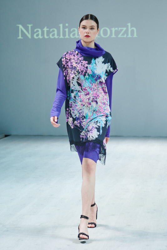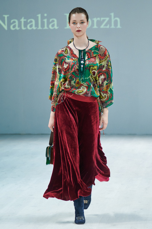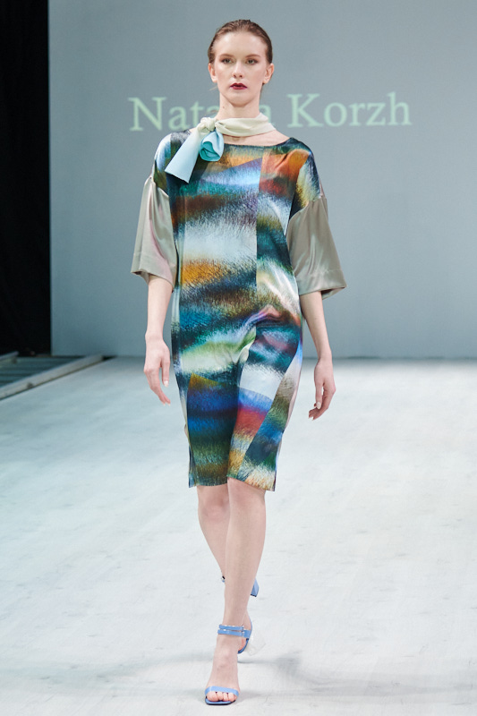 Именинница вчерашнего дня Наталья Корж в очередной раз виртуозно обыграла свой любимый материал - натуральный шелк. Туники, брючные костюмы, и, конечно же, платья! В дополнение к шелку - хлопок, тончайшая шерсть, вискоза, а принты варьировались от цветочных, до акварельного иката и пейсли(бута). Все выходы можно охарактеризовать, как современное прочтение эпохи арт-деко - отсюда и название коллекции “Дежавю”.
