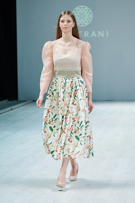 LOVERANI учли различные этапы жизни женщин и предложили кроме романтичных платьев для девушек, стильные образы для беременных. Но при этом в коллекции не было резких контрастов и вся она выглядела цельно и гармонично. Рюши, цветочные мотивы, нежное кружево - Ольга Барабанщикова не изменяет своему стилю и подчеркивает женское начало в стильных мелочах.