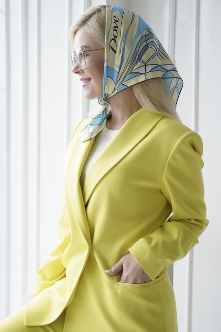 Татьяна Ефремова, член РОО «Белорусская палата моды», участник проекта: "Благодаря коллаборациям мы открываем в себе новые творческие грани. В этом проекте мы снова привлекаем внимание к платку, как к важному аксессуару. Концепция бренда Dove с его вниманием к женственности и натуральности мне близка. Сочетание небесно-голубого с лимонным или жизнерадостным оранжевым цветом подходит каждой женщине независимо от возраста и типажа".